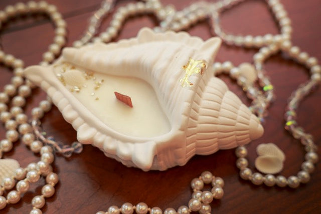 Shaped like a whisper from the sea, Ocean Breeze captures the essence of coastal calm. Nestled in a sculpted conch shell, this candle is adorned with a soft pearl, golden accents, and seashell details that echo treasures found along a morning tide walk. Its elegant, lightly fragranced glow brings the ocean's quiet magic into your space-effortlessly soothing, endlessly beautiful.